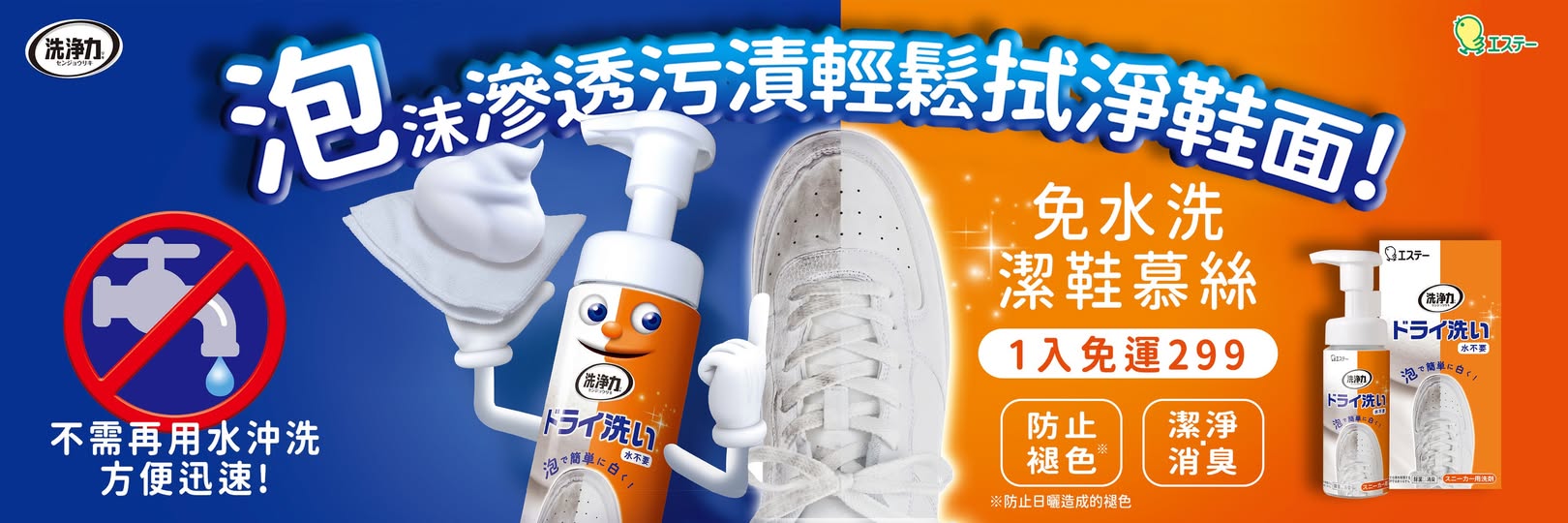 沒時間的話,使用免水洗潔鞋慕絲也可以快速淨白
