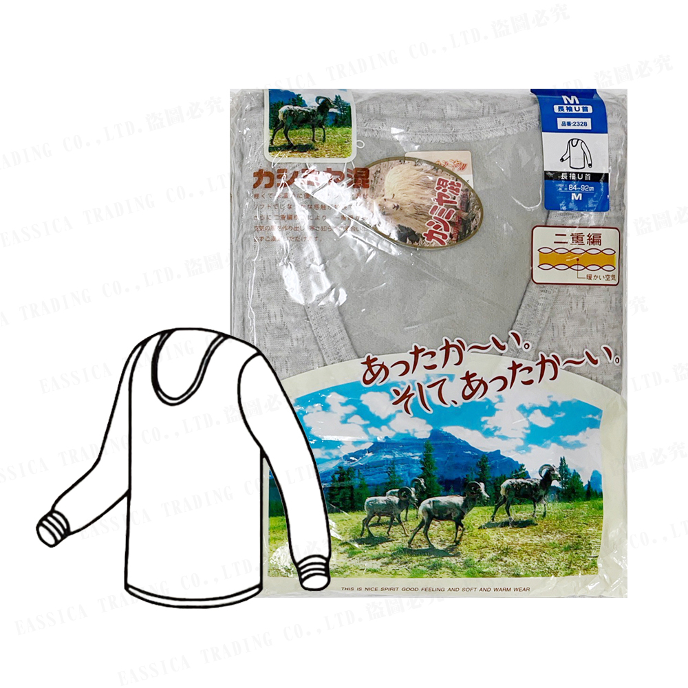 男混羊提花U領上衣(麻灰)
