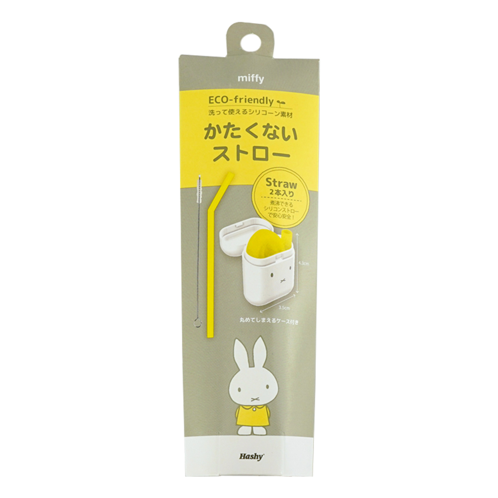 折疊矽膠環保吸管2支入附收納盒&清潔刷-米菲兔黃