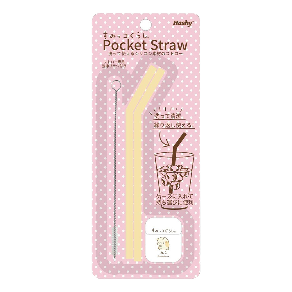 Hashy 折疊矽膠環保吸管2支入附收納盒&清潔刷-角落生物-貓咪黃