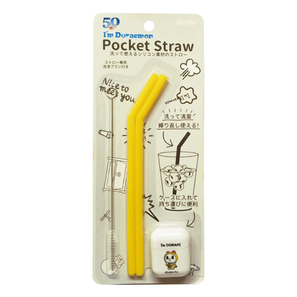 折疊矽膠環保吸管2支入附收納盒&清潔刷-哆啦美