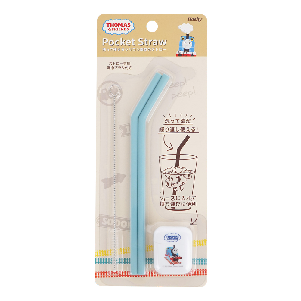 折疊矽膠環保吸管2支入附收納盒&清潔刷-湯瑪士小火車
