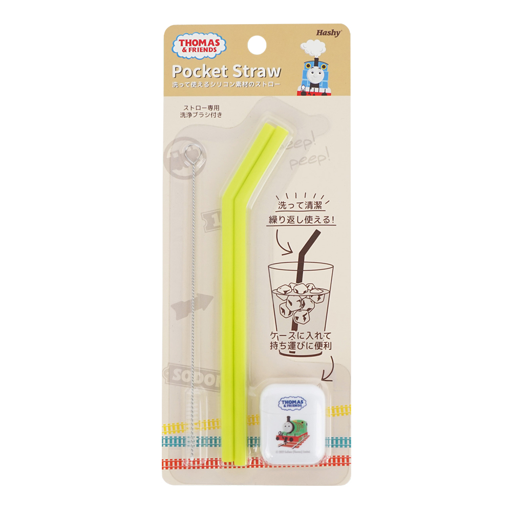 折疊矽膠環保吸管2支入附收納盒&清潔刷-湯瑪士小火車-培西