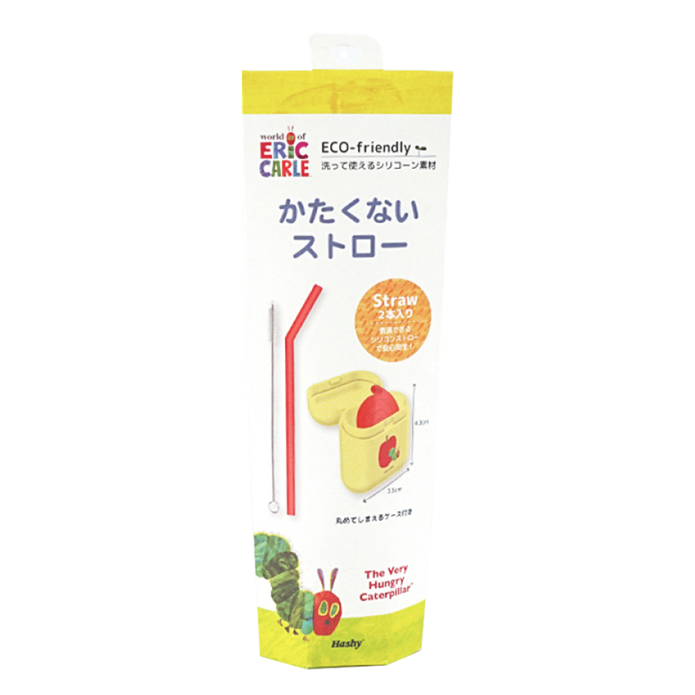 折疊矽膠環保吸管2支入附收納盒&清潔刷-好餓的毛毛蟲