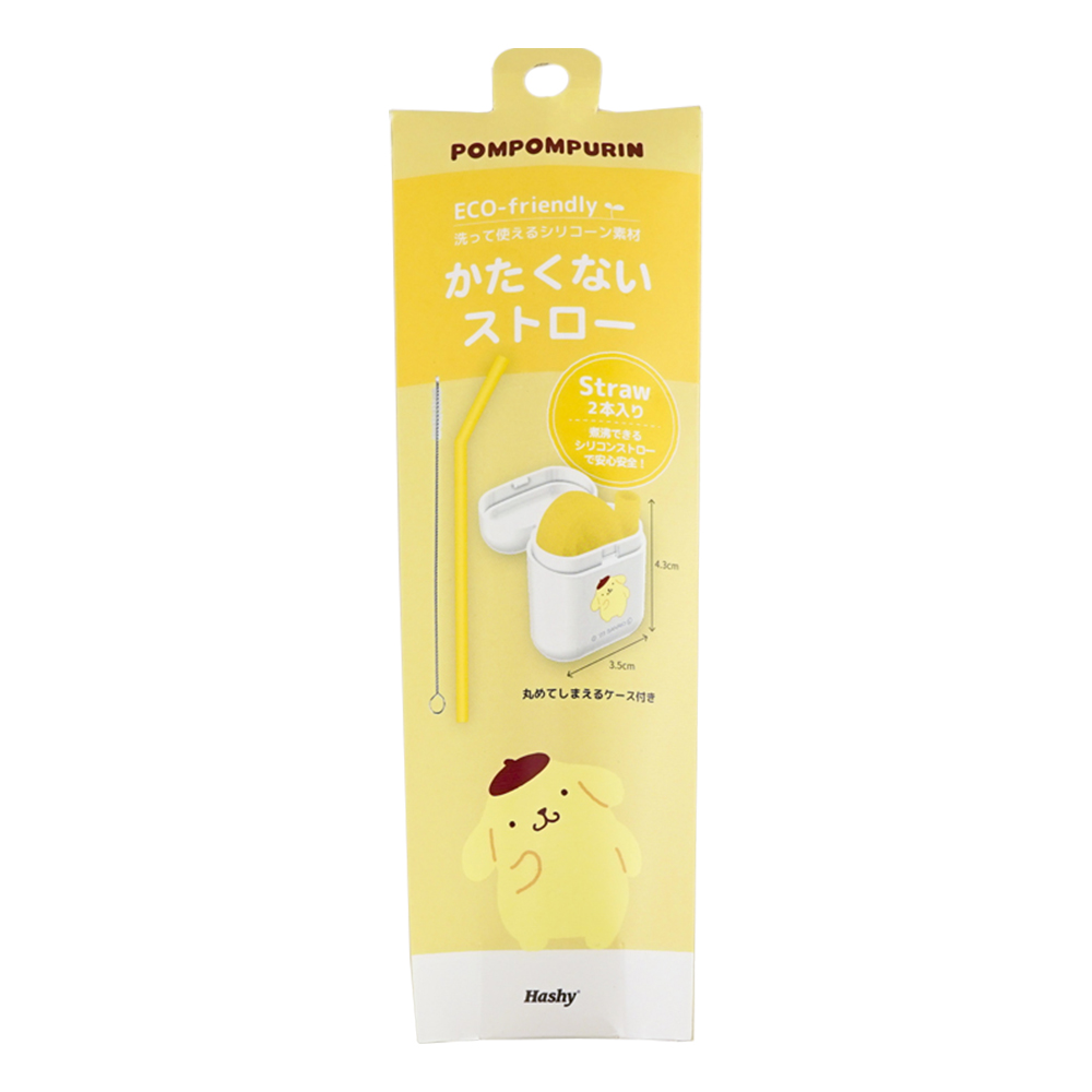 折疊矽膠環保吸管2支入附收納盒&清潔刷-布丁狗