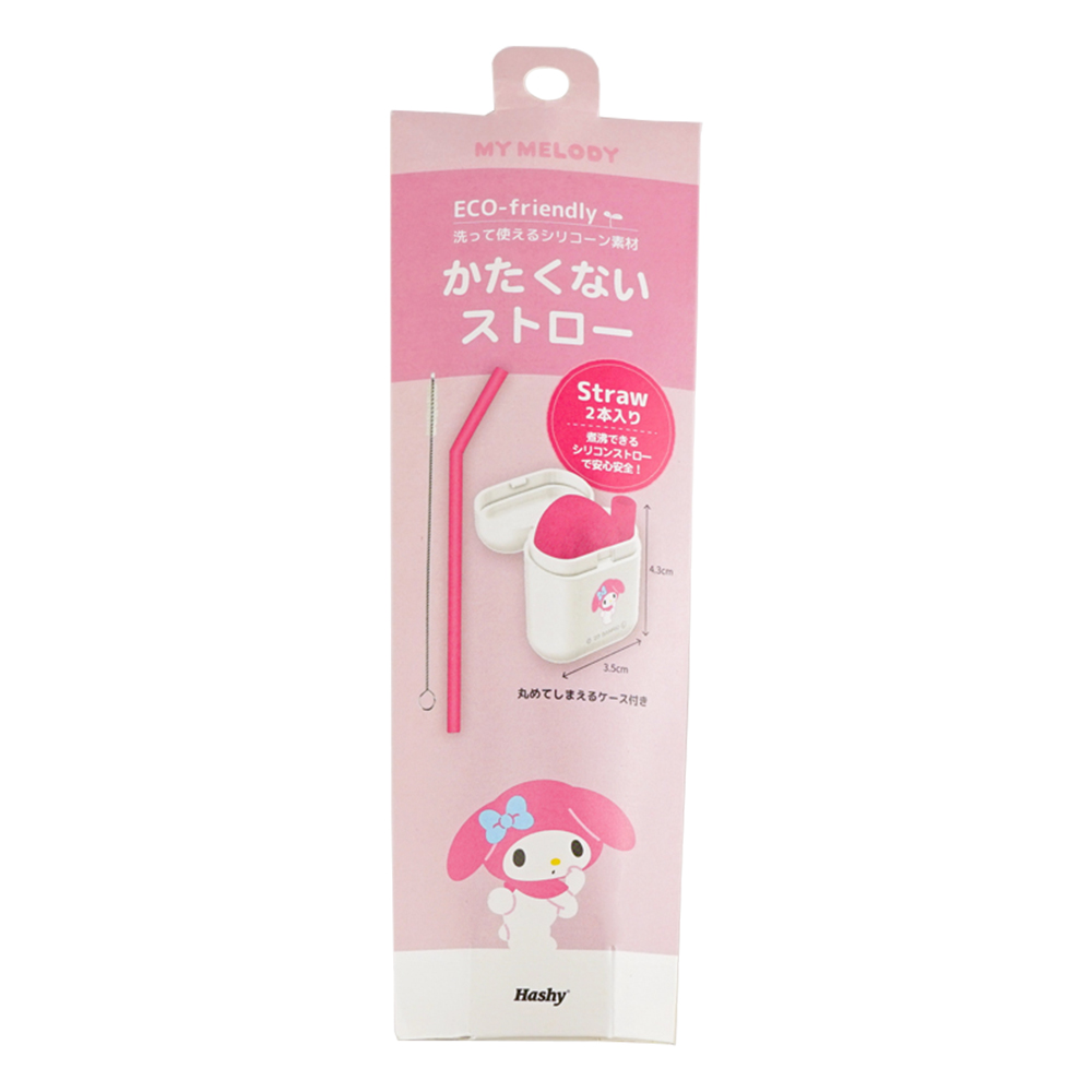 折疊矽膠環保吸管2支入附收納盒&清潔刷-美樂蒂
