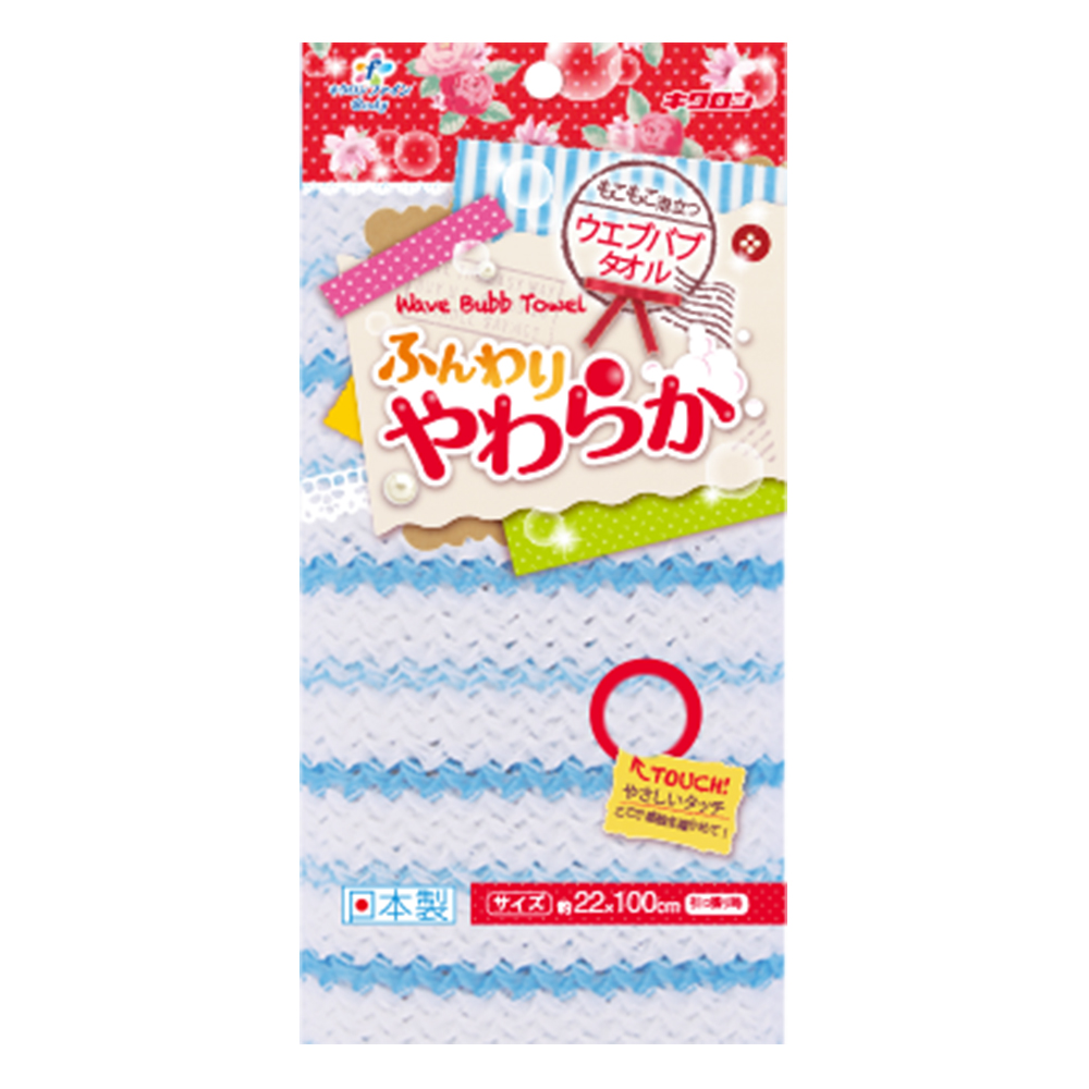 採用富含空氣感且柔軟的波浪編織法,擁有優質柔和的觸感。少量的沐浴乳或香皂加水就可搓揉出濃密且細緻泡沫,溫和潔淨肌膚舒服又暢快!使用後,簡單清洗即可洗淨,可輕鬆保持乾爽。尺寸:約22 X 100cm