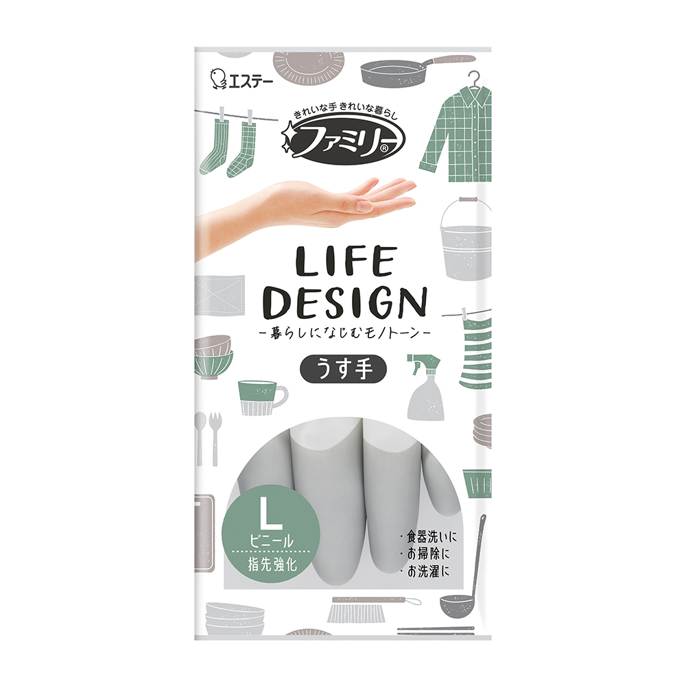 迎合現代人喜好的簡約設計,不過度主張鮮豔的色彩,符合新生活趨勢的家事用手套