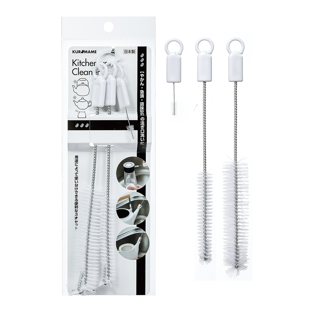 針對茶具壺口間隙細縫而製成,大、中、小三種不同口徑粗細設計之刷具組。專門清潔各種平常刷不到的注水小口徑,輕鬆洗淨日積月累的污垢,讓您在清洗各種水壺、茶壺、調味罐等口徑時更方便。