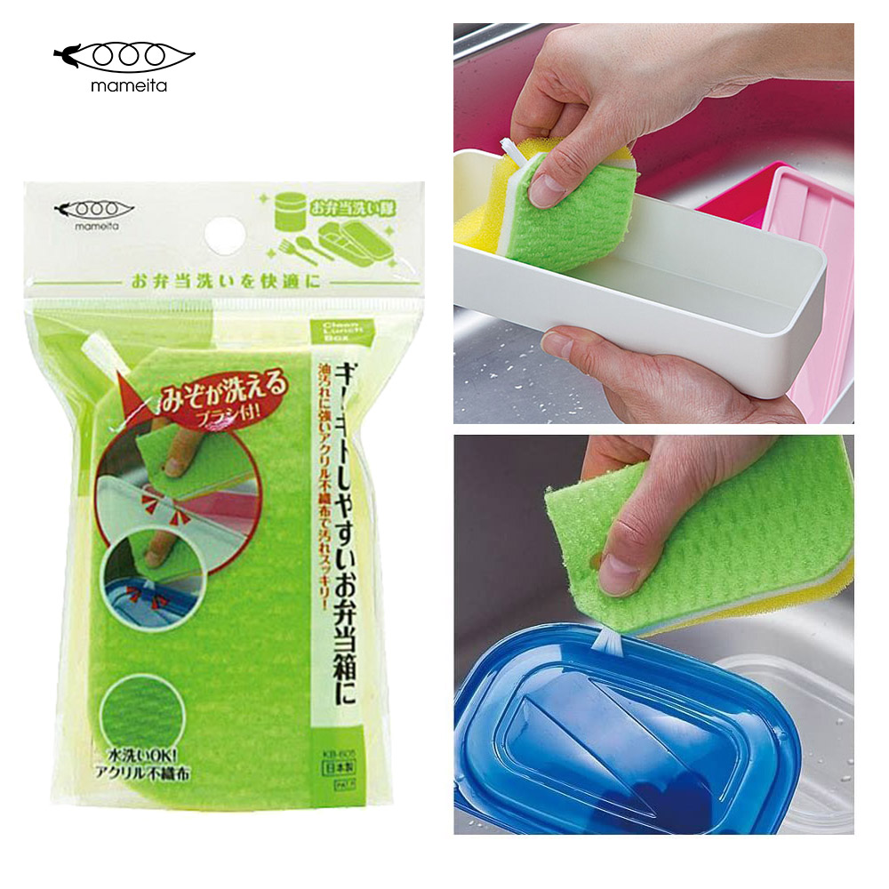 ●四四方方的清潔綿的邊角還有一小支刷子,造型奇特又可愛,是清潔泡綿與刷子的雙重組合!●不織布表面的清潔泡綿,搭配碗盤專用清潔劑清潔時,不織布表面能除去油污●泡綿裡層讓清潔劑易起泡,以泡沫確實清潔便當內的污垢,不傷容器材質●小刷子處能輕鬆刷去便當盒容器溝槽內的髒污油垢,確實清洗,乾乾淨淨!