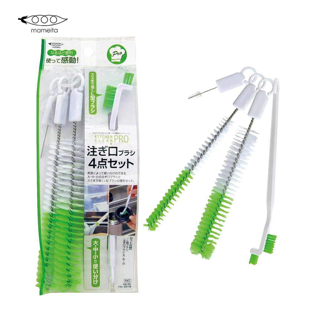 針對瓶蓋或是茶具壺口間隙細縫而製成。L型及大、中、小三種不同口徑粗細設計刷具組,可針對需要清洗不易的壺口間隙,輕鬆洗淨不費力。