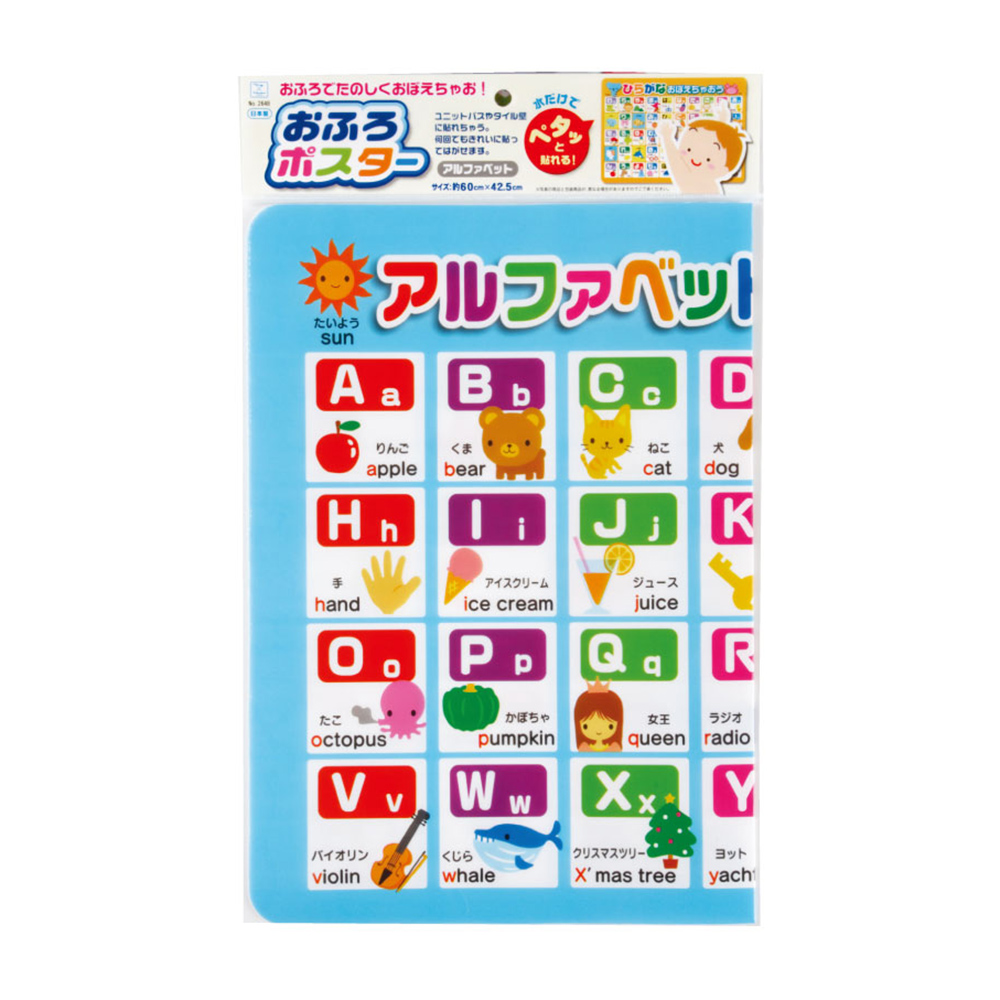 將本品背面均勻沾濕,貼於平整的浴室牆面,洗澡也能學習