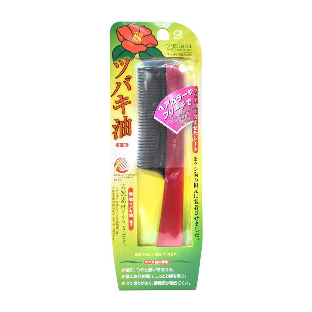 使用日本女性自古以來最為喜愛的椿花油,以特殊製法製成,裝置入髮梳中央的黑色條狀物即富含椿花油潤髮成份