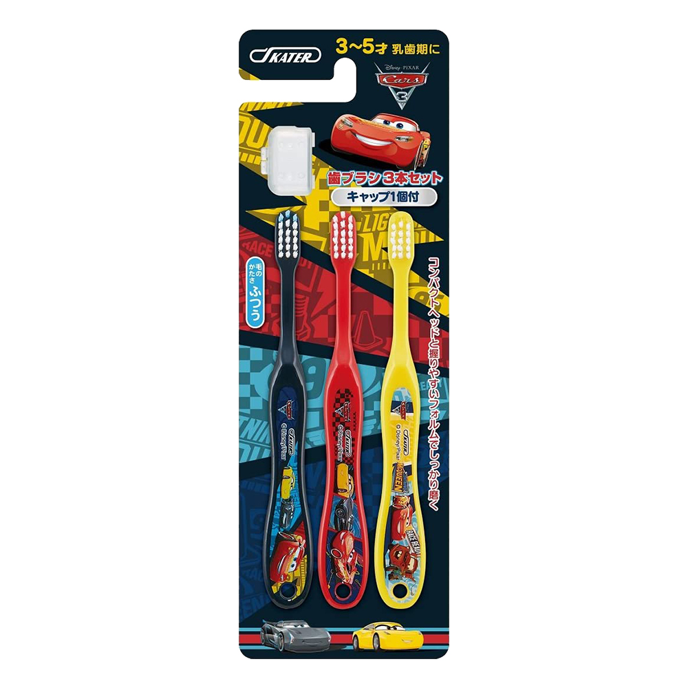 幼兒牙刷汽車總動員3支入附刷毛蓋(3~5歲/普通毛)