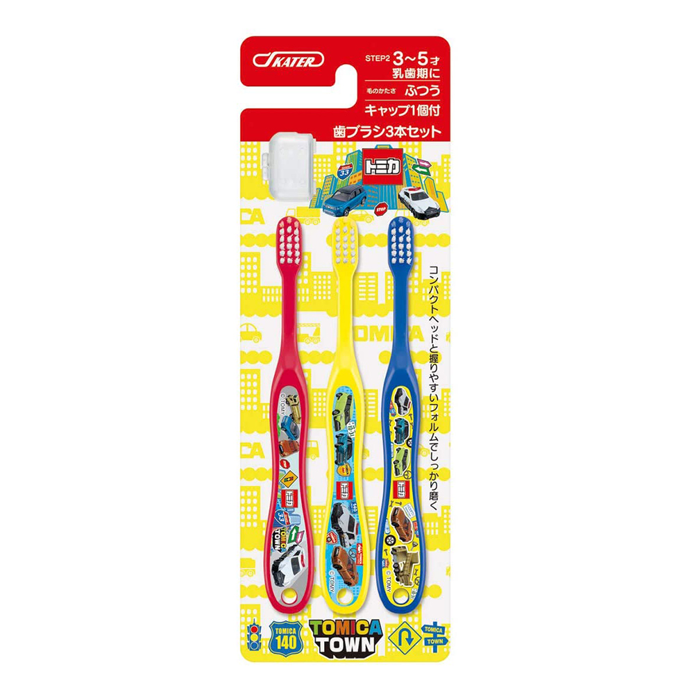 幼兒牙刷TOMICA3支入附刷毛蓋(3~5歲/普通毛)