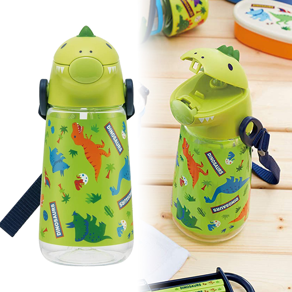 ●瓶身採用不易破裂、高透明度的材質;按壓式彈蓋,內置吸管,方便幼兒直接飲用●可拆式背帶,並附姓名貼,方便書寫兒童姓名;可愛立體恐龍頭造型瓶蓋,使用時都有好心情。