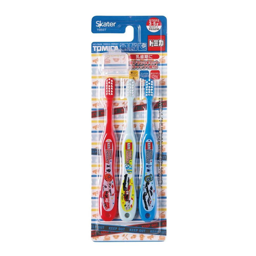 SKATER幼兒牙刷TOMICA3支入附刷毛蓋TB5ST(3~5歲/軟毛)