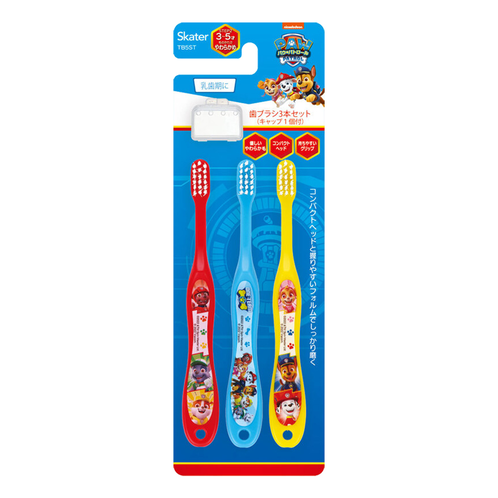 SKATER幼兒牙刷汪汪隊立大功3支入附刷毛蓋TB5ST(3~5歲/軟毛)