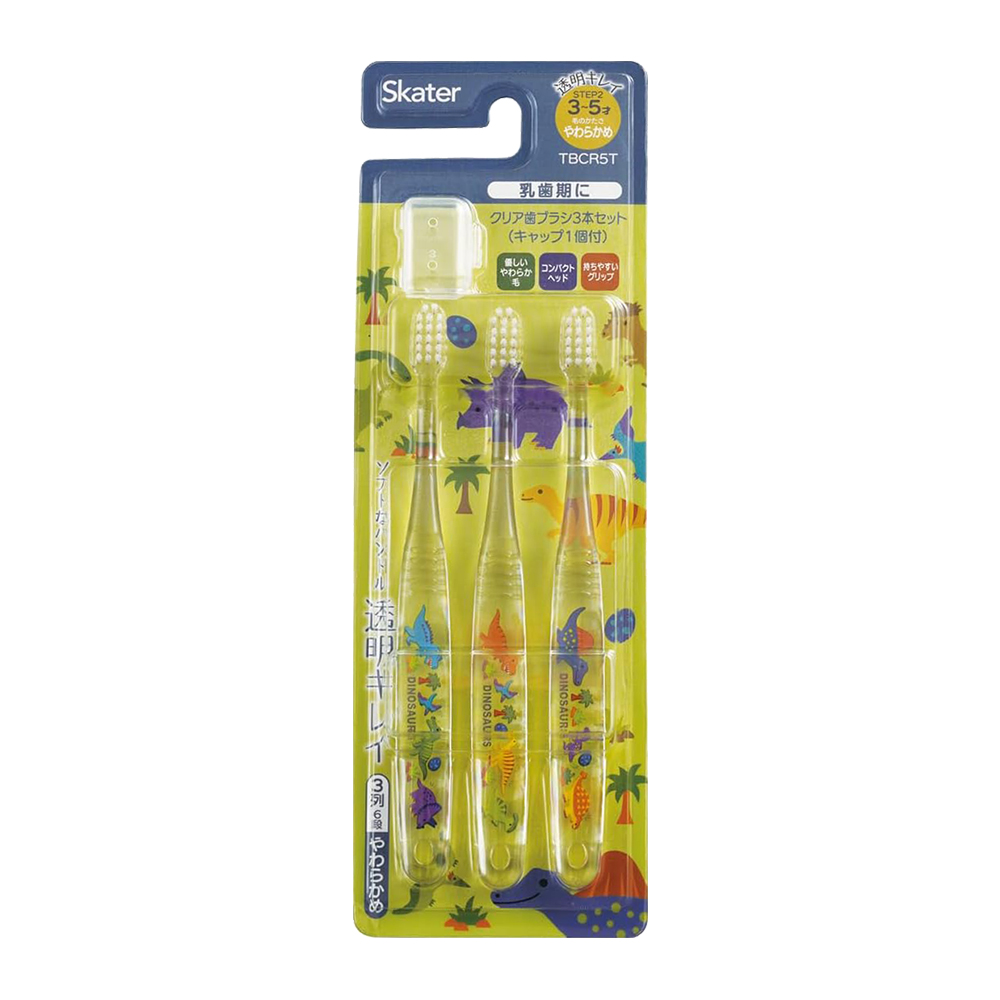 SKATER幼兒水晶牙刷恐龍(綠)3支入附刷毛蓋TBCR5T(3~5歲/軟毛)
