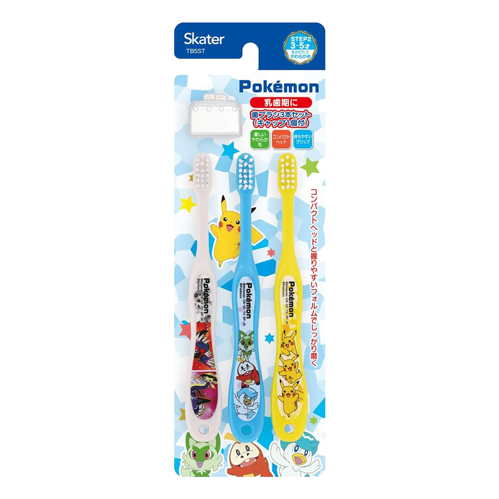 SKATER幼兒牙刷皮卡丘3支入附刷毛蓋TB5ST(3~5歲/軟毛)