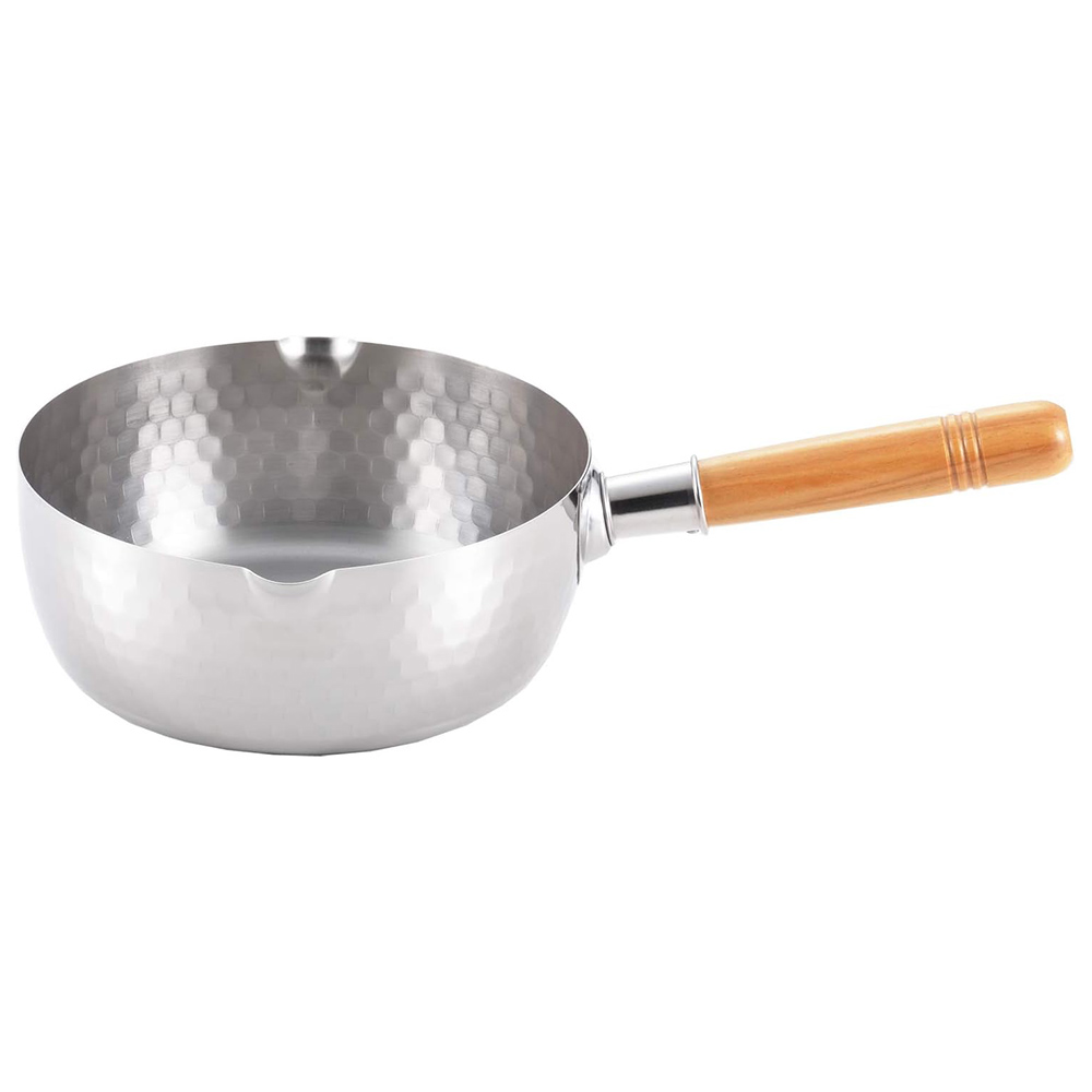 用於烹煮料理。雙邊鍋嘴設計,左右手皆可操作。鍋身內部容量刻度設計,方便計量。適用於瓦斯爐、電磁爐