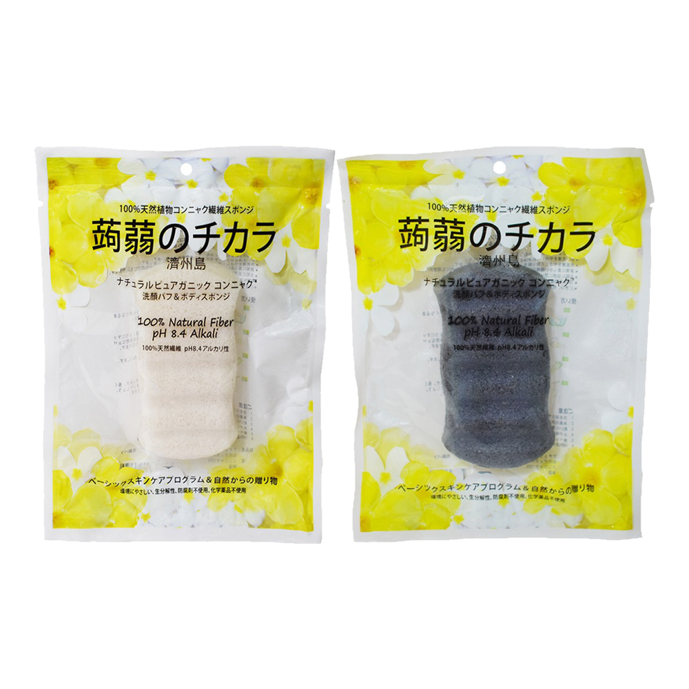 白色-自然潔淨/黑色(竹炭添加)-加強潔淨不含防腐劑及化學添加,100%蒟蒻纖維。