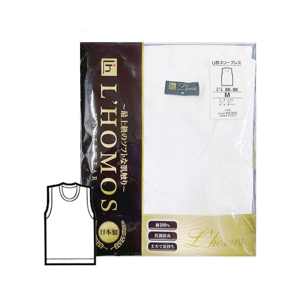 L'H男抗菌防臭綿U領無袖衣