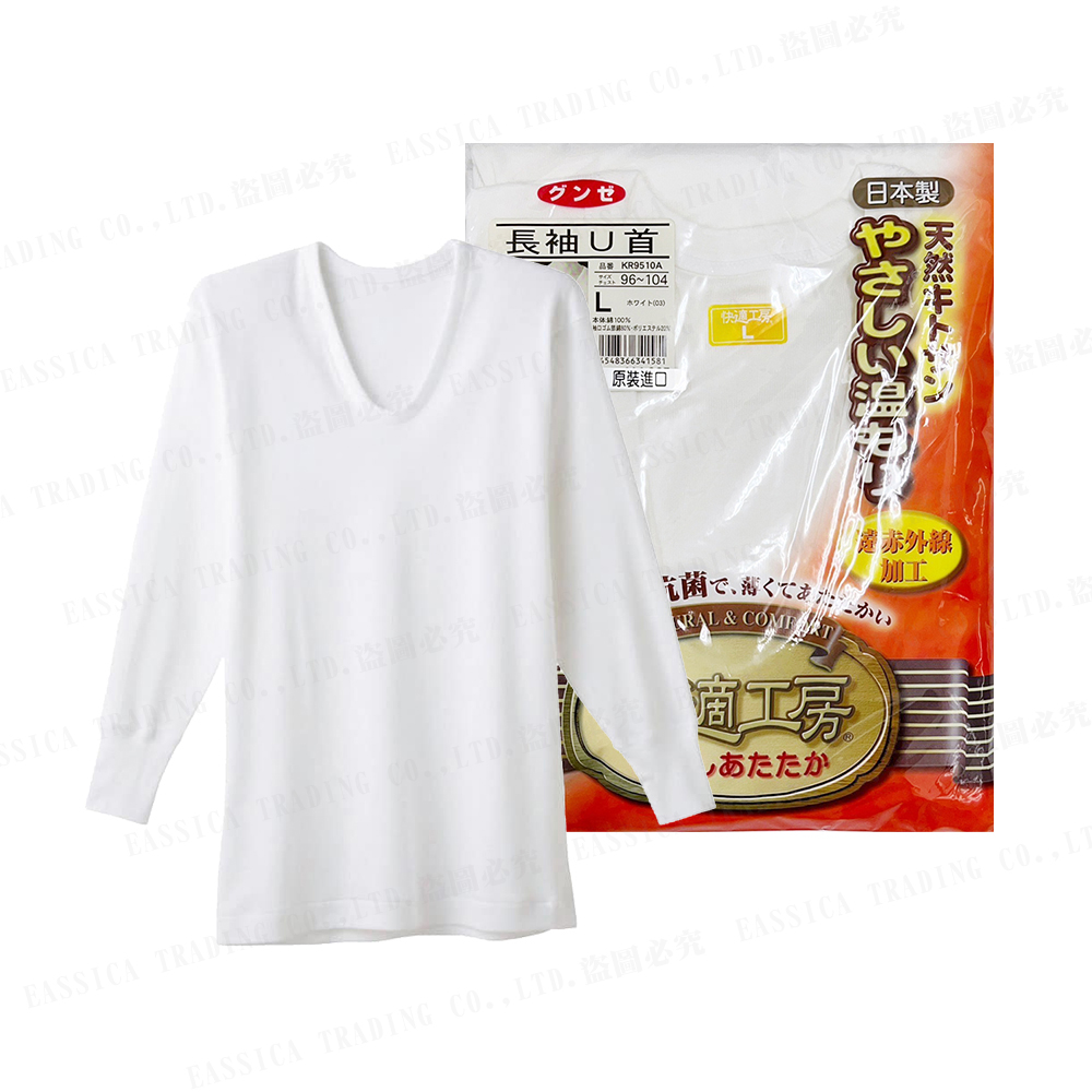 郡是快適工房長袖U領衣(白)
