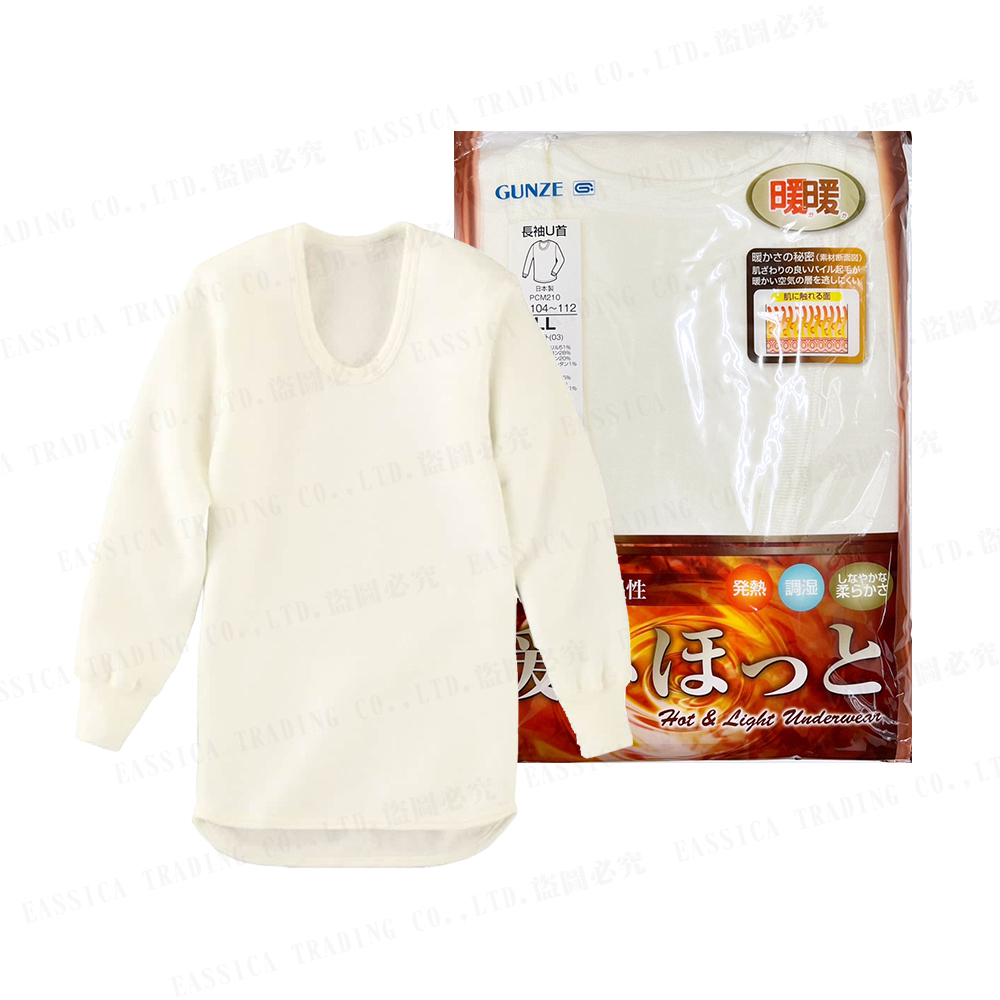 郡是高保溫男長袖U領衣(白)
