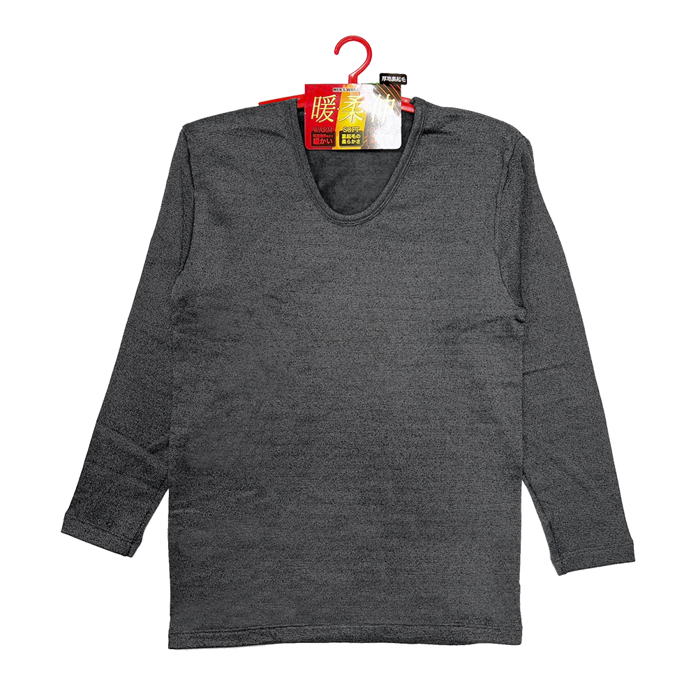 男起毛發熱保溫U領衣(黑)